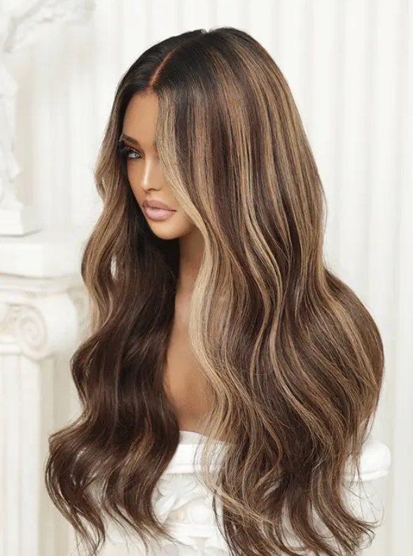 Milano es una peluca de cabello humano color miel, con iluminaciones diseñada para elevar tu look y hacerte lucir sofisticada, poderosa y costosa. Con un largo a escoger, desde 24" a 30", textura ondulada y una densidad extraordinaria de 250%.